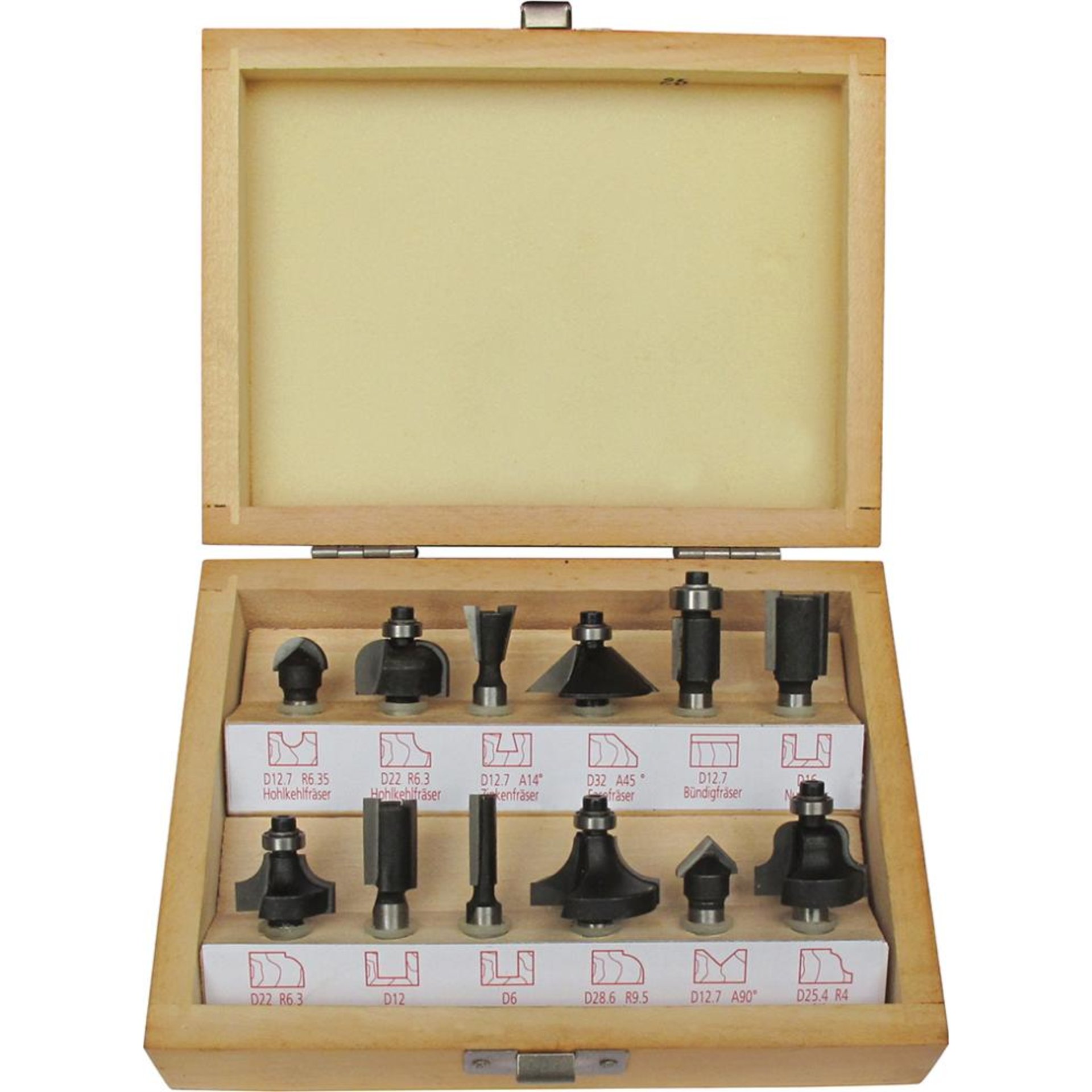 Produktinformationen "Fräser-Satz HW 12tlg. S8 im Holzkasten FORTIS"