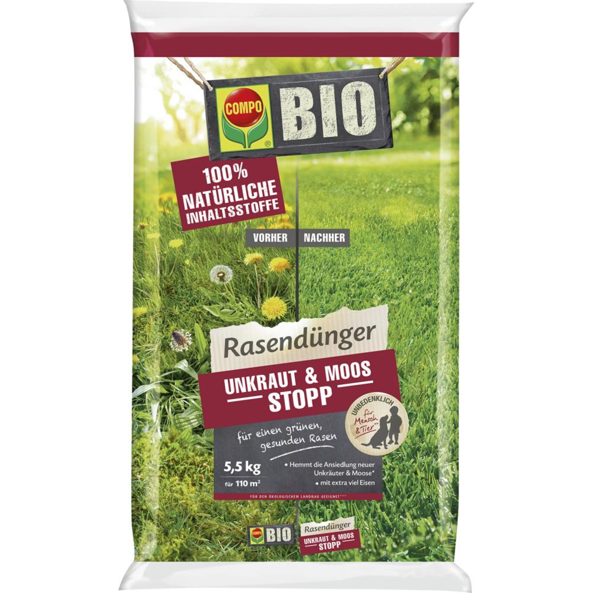 Mit dem organisch-mineralischen COMPO BIO Rasendünger Unkraut & Moos Stopp können Sie Ihrem Rasen etwas Gutes tun und ihn zugleich vor Unkräutern und Moos schützen. Das Spezial-Produkt ist optimal auf die Bedürfnisse des Rasens abgestimmt. Durch die regelmäßige Anwendung des Rasendüngers fügen Sie Ihrem Rasen wichtige Nährstoffe zu, die er für ein dichtes und gesundes Wachstum benötigt. Zugleich entzieht der COMPO BIO Rasendünger Unkraut & Moos Stopp den Unkrautsamen im Rasen die Wachstumsgrundlage und wirkt somit vorbeugend gegen unerwünschten Unkrautwuchs.
