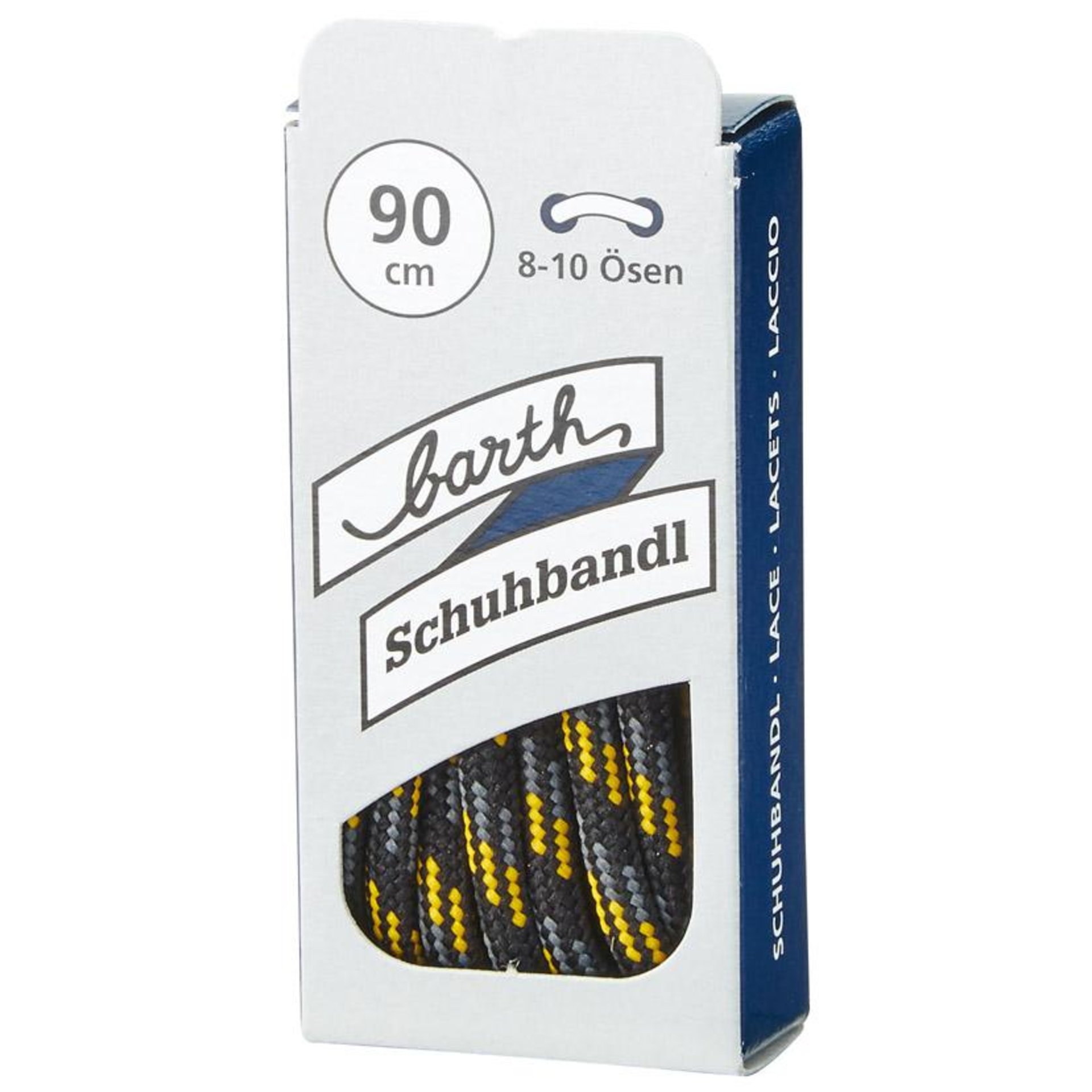 Produktinformationen "Schnürsenkel, 90 cm, rund, schwarz-grau-gelb barth Schuhbandl"