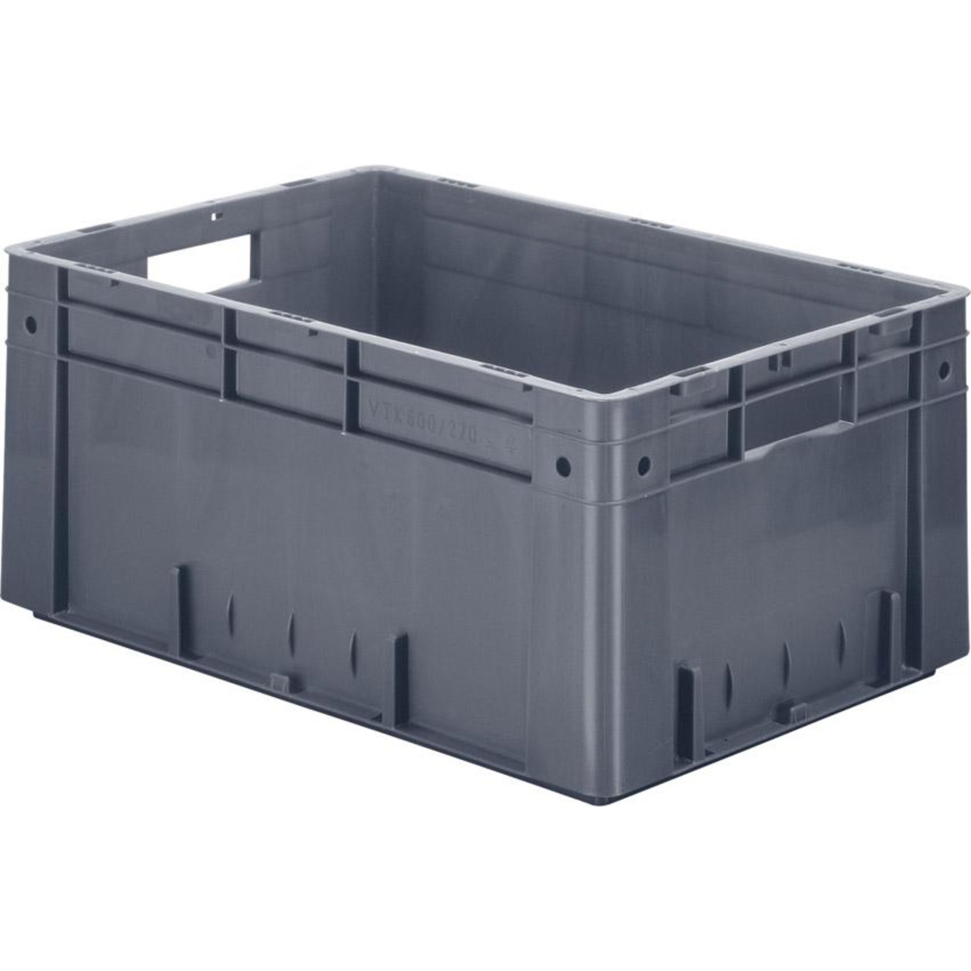 Transport-Stapelkasten B600xT400xH270 mm grau Auflast 700kg mit Griffloch LA-KA-PE